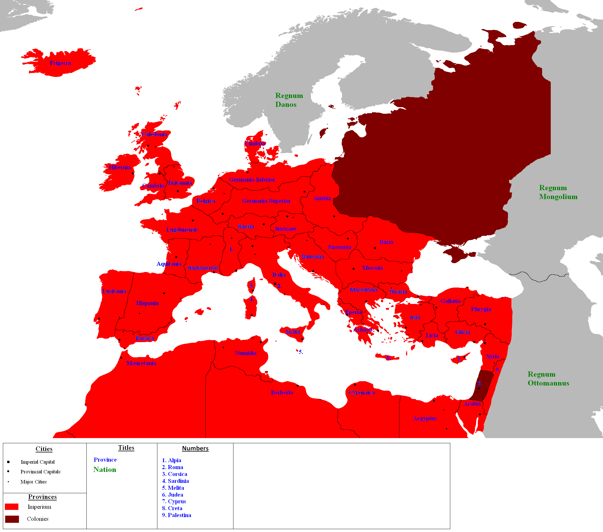 All land within the Imperium falls under one of two classifications: Roma, the master city itself which has total political independence per se and Colonia, those territories owned by Rome.