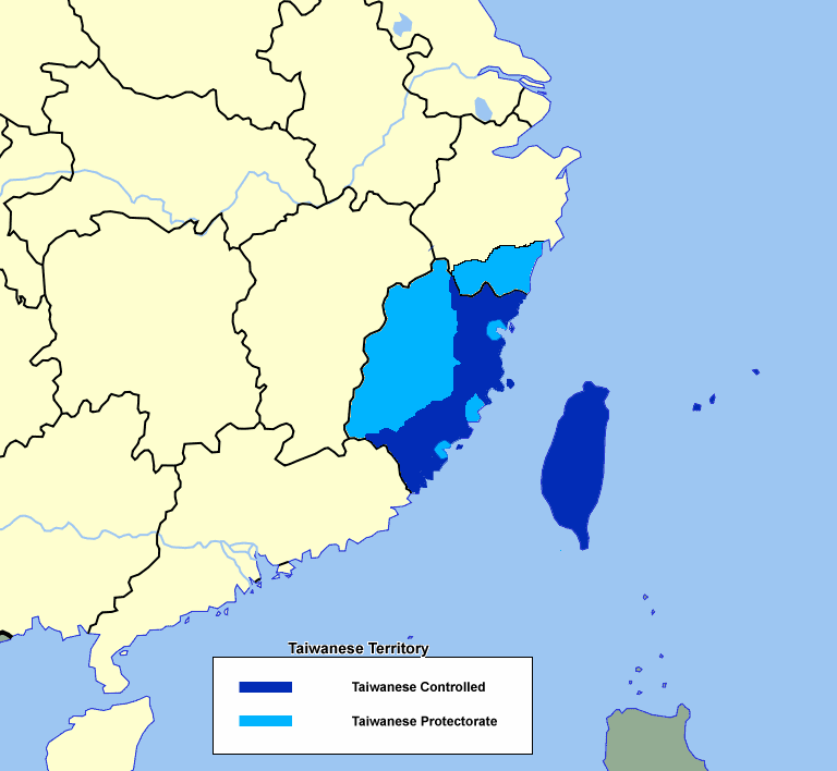 In June 2010, the Taiwanese government decided that they will once again go through the land-reclaiming offensive in mainland China. Starting August 2010, they began to move deeper into the Fujian Province, and either killed or imprisoned all of the warlords. As of November 5th, the entire province was finally put into de jure Taiwanese control as the Outer Fujian Territory, yet the population does not exceed a mere 50,000 people. However, a large amount of settlers from overcrowded Taiwan began settling here. The following year in mid-late 2011 the Taiwanese began pushing northwards along the coastline of China,
