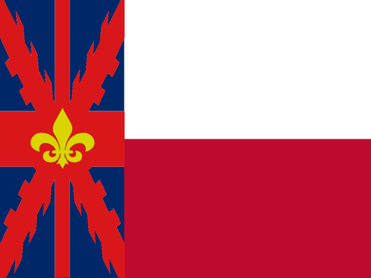 By the 1840's, the Louisianists, as the advocates of union with New France were known, had taken control of the Republic. In 1842, they passed a bill requesting union with New France. King Louis XVII et II granted consent, and Texas became part of New France, divided into 6 provinces (Nacogdoches, Sabine, Anahuac, Brazos, Bexar, and San Patricio)