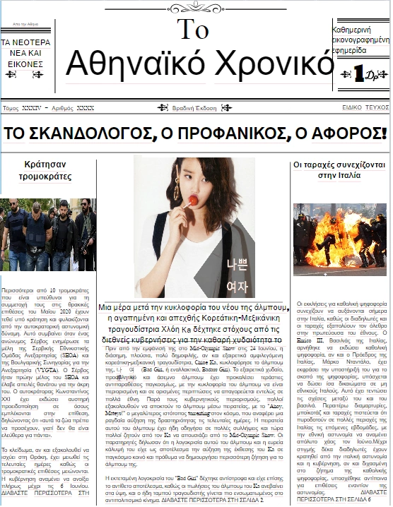 The Athenian Chronicle (Greek: Το αθηναϊκό χρονικό, pronunciation: To athinaïkó chronikó) is a Byzantine newspaper outlet based in Athens. Established in 1839 by Markos Balloulis, it is known worldwide for its detailed and sometimes sensationalistic reporting. Beginning in 2013, they began to broadcast their news on television.