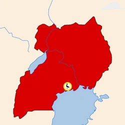 Uganda, officially the United Kingdom of Uganda, is a landlocked country in East Africa. It is bordered to the east by Kenya, to the north by Sudan, to the west by Congo, to the south-west by Rwanda, and to the south by Tanzania. The southern part includes a substantial portion of Lake Victoria, shared with Kenya and Tanzania. Uganda is in the African Great Lakes region, lies within the Nile basin, and has a varied equatorial climate. As of 2024, it has a population of 49.3 million, of whom 8.5 million live in the capital and largest city, Kampala.