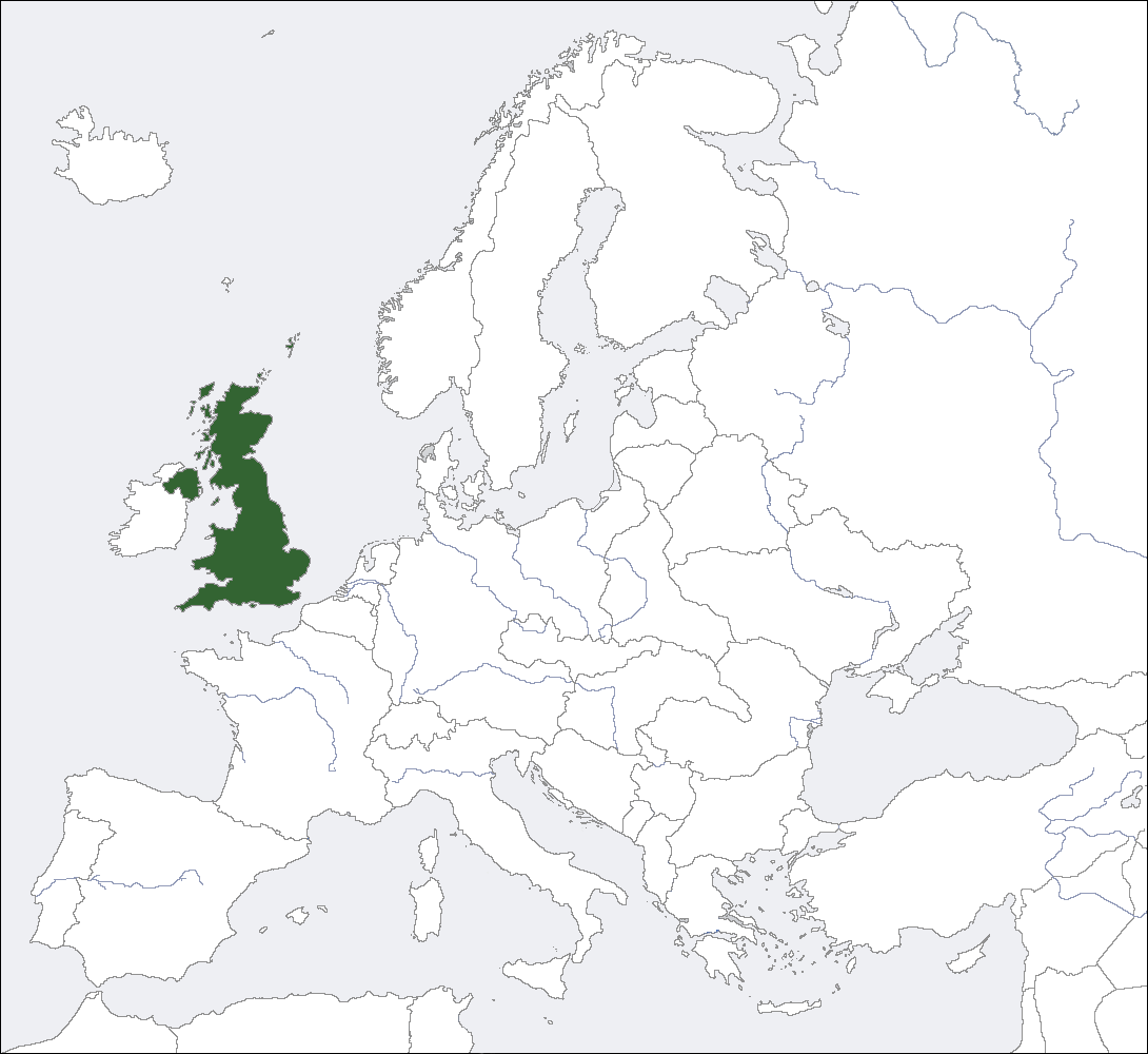 The United Kingdom of Great Britain and Ireland is a sovereign state located entirely on the British Isles, primarily compromising the island of Great Britain and the six northern counties of Ireland. The United Kingdom also claims the entire territory of the Republic of Ireland, but has no military or political control as of 2023.