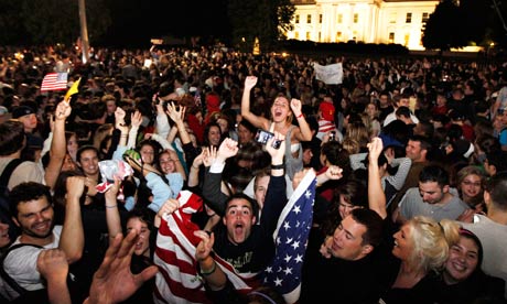 Celebration in front of the White House after the death of Osama bin Laden. May 1, 2011.